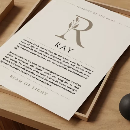 Feature the unique meaning of the name Rayden with this beautifully designed name print. Perfect for personalizing a nursery or enhancing any living space, this print combines elegant typography with a modern aesthetic. A thoughtful gift for new parents or anyone named Rayden, it adds a touch of individuality to any decor.