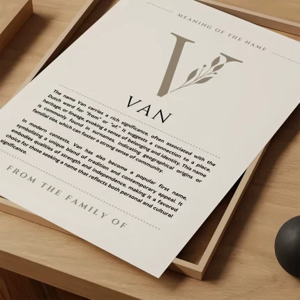 Discover the unique Van name print, a beautifully designed piece that celebrates the significance of the Van surname. Perfect for home decor or as a thoughtful gift, this print combines artistic elegance with personal heritage. Elevate your space and honor your roots with this meaningful artwork.