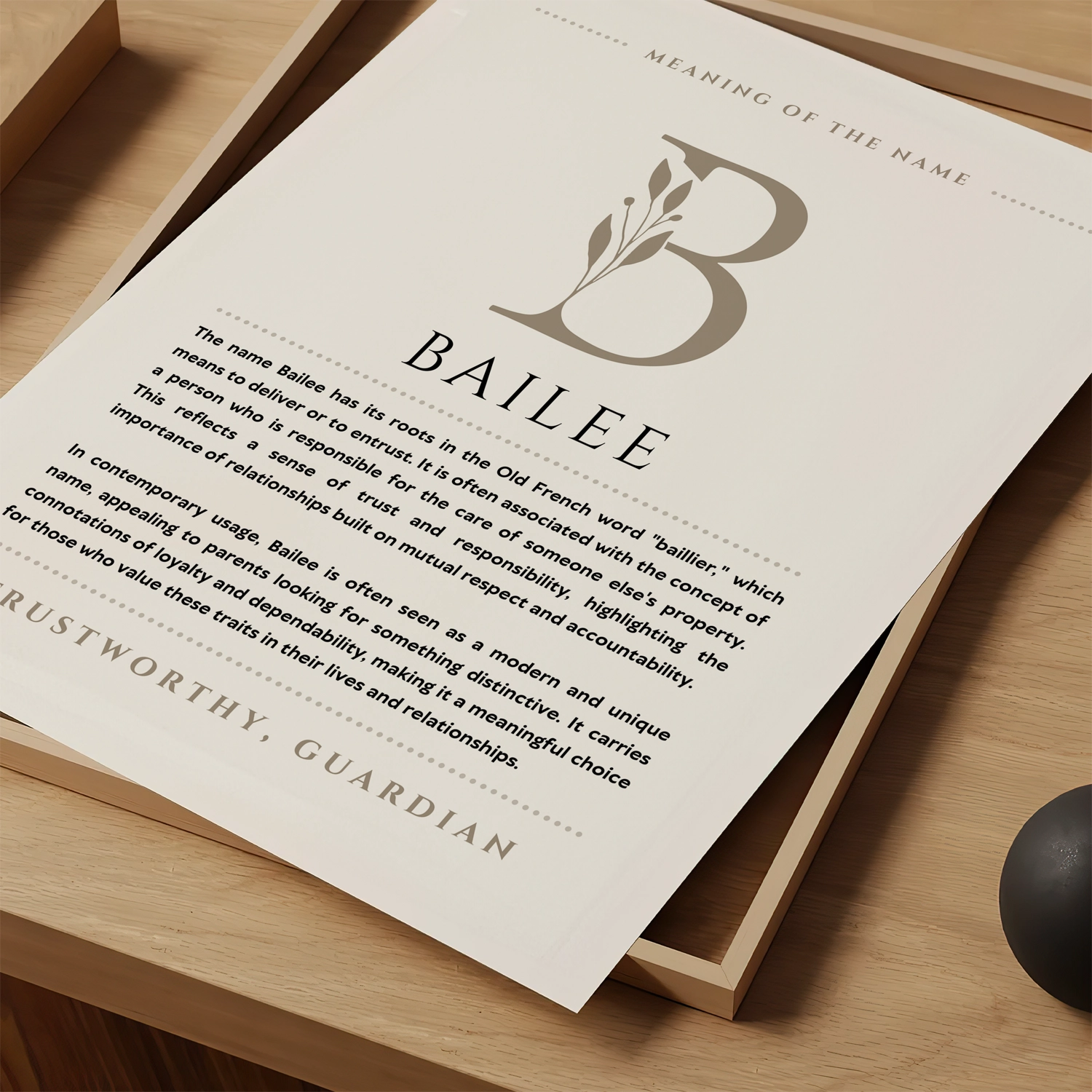 The name Bailee has its roots in the Old French word “baillier,” which means to deliver or to entrust. It is often associated with the concept of a person who is responsible for the care of someone else’s property. This reflects a sense of trust and responsibility, highlighting the importance of relationships built on mutual respect and accountability.