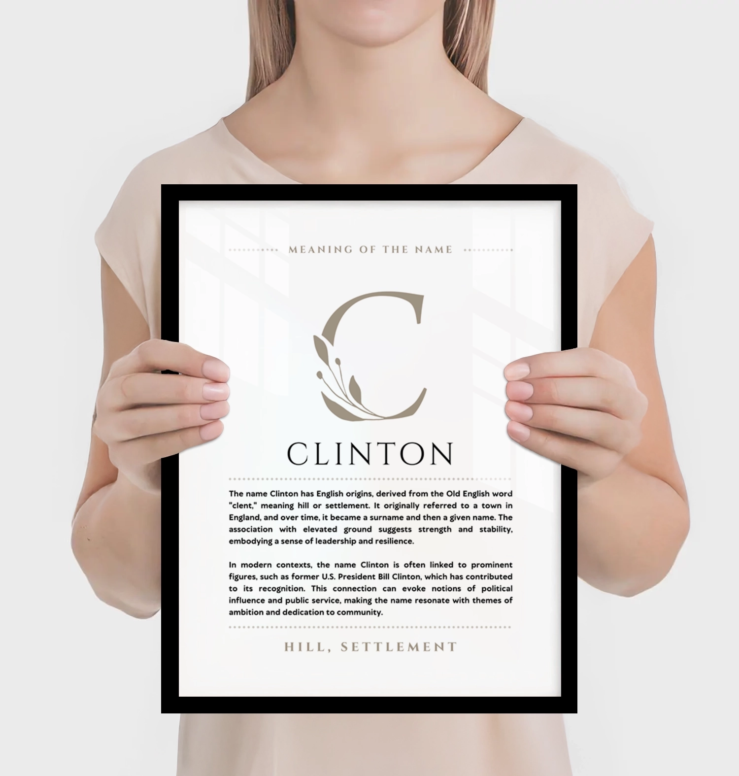 The Clinton name art beautifully captures the essence of the name Clinton, showcasing its rich history and significance. This elegant piece serves as a unique gift for anyone named Clinton or as a thoughtful addition to home decor. Embrace heritage and identity with this stunning, personalized artwork.